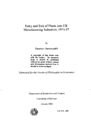 Empirical work in relation to the entry and exit of plants in UK manufacturing industries has been affected by a lack of information available to researchers. This thesis provides evidence on the entry and exit of plants in UK manufacturing industries during the 1974-97 period, using the newly released ARD dataset. In order to provide a better understanding of entry and exit of plants the following aspects were investigated: 1) the magnitude of plant entry and exit in UK manufacturing sectors during the 1974-97 period; 2) the determinants of the entry decision; and 3) the determinants of the exit decision. The findings revealed that UK manufacturing industries were characterised by a high-level of dynamics. Competition was intense and was increasing especially towards the end of the 1990s period. Therefore, the notion of "creative destruction" appeared to be of particular relevance in UK manufacturing industries. In studying the entry decision, new plants were divided into three categories: 1) those opened by domestic de-novo firms; 2) those opened by domestic incumbents; and 3) those opened by foreign firms. It was found that: 1) different types of entrants showed significant differences in their entry behaviour; 2) both industrial and geographical specific factors affect the entry decision; 3) the role played by the industry life cycle could not be ignored, as the effect of some factors on entry significantly differed across the two different stages of the industry life cycle; and 4) fundamental differences between the northern and southern regions of the UK significantly affected the impact of given factors on entry. In studying the exit decision the most important findings were: 1) the role that the age of a plant played in determining the impact of some variables on its risk of closure; and 2) the positive impact of change in ownership on the risk of closure of plants.