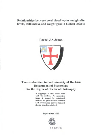 Leptin and ghrelin are hormones involved in the regulation of appetite and adiposity. Leptin suppresses appetite and induces weight loss; ghrelin stimulates appetite and promotes weight gain. The study reported in this thesis was designed to examine the relationship of cord blood leptin and ghrelin with milk intake over the first week of life, and with infant growth up to twelve weeks of age. One hundred term formula fed newborns were recruited at birth. Leptin and ghrelin were measured in cord blood by radioimmunoassay. Milk intake was measured by weighing of bottles of formula milk before and after feeding. Measurements of weight, length and head circumference were taken at birth, seven days and at twelve weeks of age. A number of control variables were also measured. Birthweight was a significant predictor of mean milk intake, which rose significantly from days 1 to 7, with no difference between males and females. Weight gain or loss in the early neonatal period was a direct and significant consequence of milk intake consumed over that period. There was no relationship between cord blood leptin or ghrelin (controlling for birthweight) on the infants' milk intake over the first 24 hours of life or on their mean milk intake over the first week of life. Weight gain was significantly correlated with birthweight, with higher birthweight associated with lower weight gain. There was no relationship between cord leptin and weight gain to three months of age after adjusting for birthweight; but lower cord ghrelin levels were significantly associated with slower weight gain.