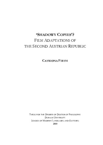 'Shadowy Copies'? Film Adaptations of the Second Austrian Republic