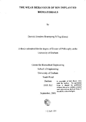 The wear behaviour of ion implanted biomaterials