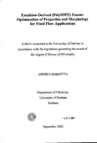 Emulsion-derived (PolyHIPE) foams: optimization of properties and morphology for fluid flow applications