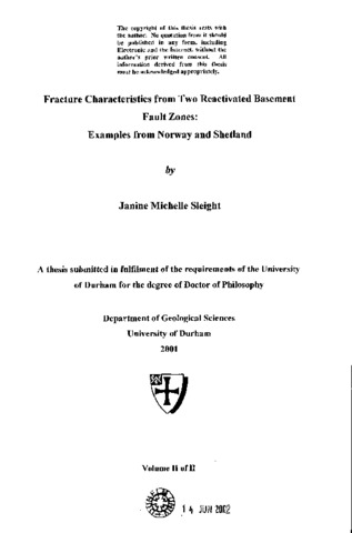 Detailed analyses of fracture attributes developed in basement rocks associated with two, crustal-scale faults, have enabled the characteristics and evolution of the fracture system geometry to be documented quantitatively. Data sets of fracture attributes have been collected adjacent to faults within the Møre-Trøndelag Fault Complex (MTFC) in Central Norway, and the Walls Boundary Fault System (WBFS) in Shetland. Both structures are of Palaeozoic origins and contain multiply reactivated fault strands that extend offshore to bound several hydrocarbon-rich sedimentary basins of Mesozoic-Cenozoic age along the North Atlantic margin. Fracture characteristics from the MTFC were measured within one dominant lithology (acid gneiss) and therefore each data set of fracture characteristics is directly comparable. A number of different fracture parameters were measured using either 1-D or 2-D techniques and were collected over four data scales. These data indicate different signatures for the two main faults within the MTFC: the Verran Fault (VF), a highly reactivated structure and the Hitra-Snasa Fault (HSF), which has experienced little reactivation, and also for a smaller, kinematically simple fault, the Elvdalen Fault (EF). The parameters measured are the exponent values from exponentially distributed spacing and length data sets, mean fracture spacing, fracture density, mean fracture length, fracture intensity and fracture connectivity (defined by the numbers of fractures and nodes per cluster, fracture cluster length and the number of nodes per unit area). Based on analyses of these parameters, the VF is characterised by a tall peak in values (or trough for measurements such as mean length and mean spacing), with a wide zone (-500m) of above-background values to the NW of the Verran Fault Plane. The HSF on the other hand is characterised by a tall and narrow zone of above-background values (or below for mean spacing and mean length parameters), which decrease to background levels within 100m either side of the Hitra- Snasa Fault Plane. The EF is also characterised by a narrow but shorter peak in above background values, where the height of the peak is less than half that associated with the VF and HSF. These different signatures are most likely to be related to the differing reactivation histories between the three faults. In addition, the VF shows widespread evidence for multiple phases of fluid-related alteration and mineralisation, suggesting that the fracture network characteristics play an important role in controlling fluid flow in these otherwise relatively impermeable basement rocks. The data sets of fracture characteristics collected adjacent to four faults within the WBFS display general trends consistent with the changes in fracture attributes observed adjacent to faults within the MTFC. However, the results are considered to be less reliable. Firstly, the data sets were collected within seven different lithologies, meaning that the fracture attributes must be considered separately, resulting in small data sets compared to those collected from gneisses within the MTFC. In addition, the four faults studied all have different kinematic histories. The findings of this study show that detailed studies of fractures may potentially be used to fingerprint fault reactivation and enable its' recognition in the subsurface.