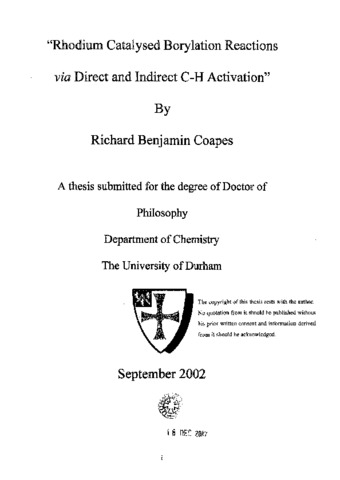 "Rhodium catalysed borylation reactions via direct and indirect c-h activation"