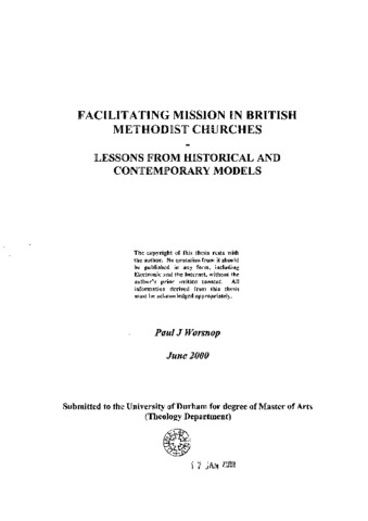 Facilitating mission in British Methodist churches: lessons from historical and contemporary models