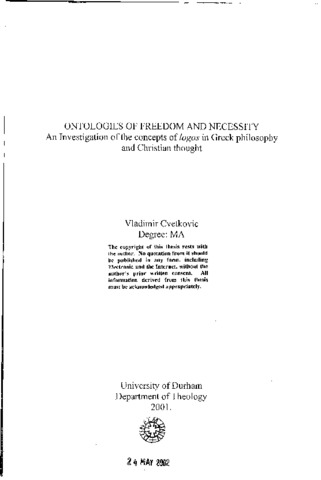 Ontologies of freedom and necessity: an investigation of the concepts of logos in Greek philosophy and Christian thought.