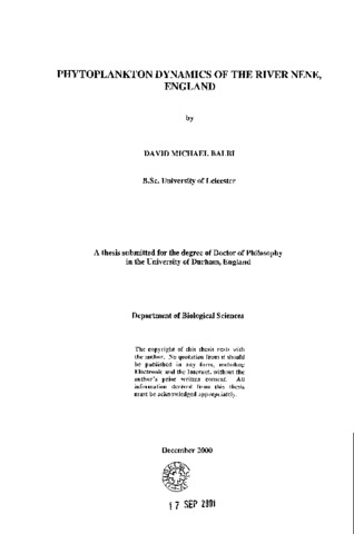 Phytoplankton dynamics of the river nene, England