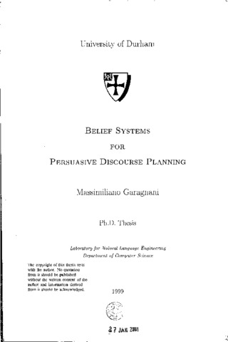 This thesis is concerned with the problem of construction of the logical structure of a persuasive discourse. A persuasive discourse can be defined as a monodirectional form of communication, generated by a speaker in order to convince a hearer about the validity (or fallacy) of a specific belief The construction of the structure of a persuasive discourse is realized, in this work, through the adoption of two basic elements: a belief system and a planning system. The planning system is used as a tool for the automatic generation of the discourse structure (or plan), obtained through the decomposition of the assigned (communicative) goals of persuasion, aimed at producing specific effects on the hearer’s beliefs. The belief system is adopted in order to endow the planning process with a formal language of beliefs for the representation of such goals, and with the mechanisms which govern the propagation of their (expected) effects on the rest of the hearer's belief state. The main results presented consist of the formalization of a paradigm for specification of belief systems, and of a method — whose correctness is formally proved — for their integration with planning systems. The formalization of a belief system for discourse structure representation (defined in accordance with the theoretical paradigm) is also given, together with the description of its implementation and integration with a specific planner, which resulted in the actual completion of a system for the automatic generation of persuasive discourse plans.