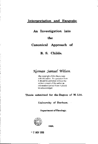 Interpretation and exegesis: An investigation into the canonical approach of B. S. Childs