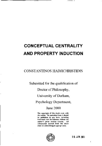 This thesis examines property generalization among concepts. Its primary objective is to investigate the hypothesis that the more central a feature for a concept, the higher its generalizability to other concepts that share a similar structure (features and dependencies). Its secondary objectives are to examine the relative contributions of feature centrality and feature variability in property induction, whether centrality offers a domain-general or a domain-specific constraint, and whether centrality can operate under conditions of vagueness. Experiments 1 and 2 addressed the centrality hypothesis with centrality measured, whereas Experiments 3 to 14 and 17 with centrality manipulated. Relative feature centrality was manipulated as follows: from a single-dependency chain (Experiments 3 to 7), from the number of properties that depended upon a feature (Experiments 8 to 11 and 17), and from the centrality of the properties that depended upon the critical features (Experiments 12 to 14). The results support the centrality hypothesis. Experiments 12 to 16 addressed the relative contributions of centrality and variability in property induction. Experiments 12 to 14 pitted a central and variable property against a less central and less variable property in judgments of frequency and inductive strength. The results suggest that property induction depends on centrality rather than frequency information, and that centrality can bias the perception of frequency (although the latter results were not clear-cut). Experiments 15 and 16 pitted centrality against variability in information seeking. The results show that centrality information is sought more often than variability information to make an inference, especially amongst dissimilar concepts. Experiments 1 to 16 used animal categories. Experiment 17 examined the centrality hypothesis with artifact categories. The results show centrality effects. Taken together, the Experiments suggest that centrality offers a domain-general constraint. Experiments 5, 8 to 11, and 17 left the properties that depended upon a candidate feature unspecified. A centrality effect was still obtained. The results suggest that centrality can operate under conditions of vagueness. The results are discussed in terms of theories of conceptual structure and models of category-based inference. A model to capture the present findings is also sketched.