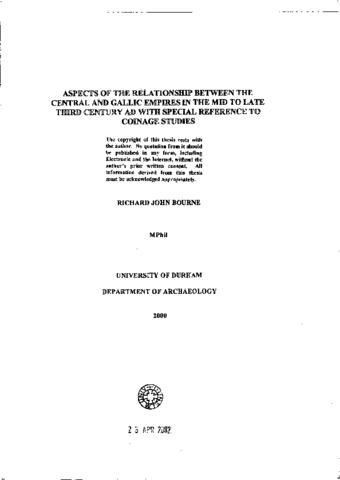 Aspects of the relationship between the central and Gallic empires in the mid to late third century ad with special reference to coinage studies.