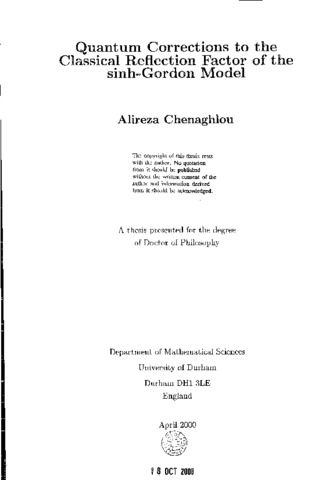 This thesis studies the quantum reflection factor of the sinh-Gordon model under boundary conditions consistent with integrability. First, we review the affine Toda field theory in Chapter One. In particular, the classical and quantum integrability of the theory are reviewed on the whole line and on the half-line as well, that is, in the presence of a boundary. We next consider the sinh-Gordon model which is restricted to a half-line by boundary conditions maintaining integrability in Chapter Two. A perturbative calculation of the reflection factor is given to one loop order in the bulk coupling and to first order in the difference of the two parameters introduced at the boundary. The result provides a further verification of Ghoshal's formula. The calculation is consistent with a conjecture for the general dependence of the reflection factor on the boundary parameters and the bulk coupling. In Chapter Three, quantum corrections to the classical reflection factor of the sinh-Gordon model are studied up to second order in the difference of boundary data and to one loop order in the bulk coupling. Chapter Four deals with the quantum reflection factor for the sinh-Gordon model with general boundary conditions. The model is studied under boundary conditions which are compatible with integrability and in the framework of the conventional perturbation theory generalised to the affine Toda field theory. It is found that the general form of a subset of the related quantum corrections are hypergeometric functions. Finally, we sum up this thesis in Chapter Five along with some conclusions and suggestions for further future studies.