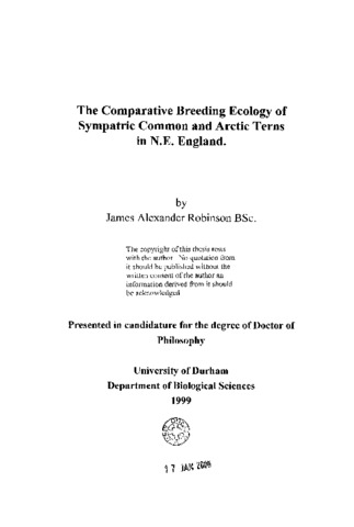 The comparative breeding ecology of sympatric common and arctic terns in N.E. England