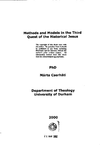 Methods and models in the third quest of the historical Jesus