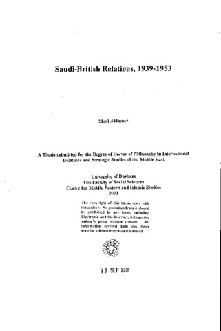 The present study attempts to understand the shift that occurred in Saudi-British relations by the year 1953. The tracing of such a shift is dealt with by investigating the development of these relations from 1939 and through to 1953.The research is drawn upon a documentary diplomatic history method reinforced by an analytical approach. Within the framework of analysis, the Realism approach to international politics is selected. Certain assumptions that most of - classical and modern - Realists agreed upon are in use, specifically the state-centric assumption, the rationality assumption, the unitary assumption, the anarchic assumption, and the security assumption. As is clear from existing secondary sources, Saudi Arabia and Britain enjoyed a kind of special relationship in the early 1940s, but by the last year of King Ibn Saud's reign (1953) these two states' relations had deteriorated into severe conflict. Though some existing sources have attempted to shed some light on that development, their findings are indeed modest. In fact, none of this literature has studied the topic from a purely Saudi-British perspective, nor has any of it explored and analysed the matter with the depth that it deserves. By focusing on Saudi-British relations the chapters of this thesis are endeavouring to answer profoundly a variety of questions that affected the main course of these relations. By questioning the impact of certain issues on Saudi-Anglo relations - such that of Saudi-US relations, the security concept, the Saudi-Hashemite problem, and the frontier conflict - the thesis will address its main theme.