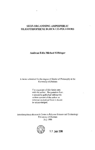 A new route to oligothiophene-PEO-block-co-polymers has been developed, in which well-defined a-oligothiophene blocks (from bithiophene to sexithiophene) alternate with poly(ethylene oxide) blocks. These materials show high solubility in common organic solvents. Sexithiophene derivatives with short PEO chains attached at the a-positions have been synthesised as model systems for the above sexithiophene polymer. PEO side-chains as short as pentaethylene glycol had a good solubilising effect on the otherwise insoluble sexithiophene. All compounds prepared exhibited surface activity, as shown by monolayer experiments on a Langmuir trough. Sexithiophene model compounds with short PEO side-chains could be compressed to form a two-dimensional condensed phase. X-ray diffraction of melt cast films of the oligothiophene polymers showed that a minimum oligothiophene block-length of five thiophenes (pentathiophene) was necessary to fully disturb PEO crystallisation. The sexithiophene polymer formed regions of crystalline/aggregated sexithiophene in the bulk. UV/Vis and fluorescence studies in solution indicated that the oligothiophene segments were molecularly dissolved in good solvents like chloroform. Aggregation of the oligothiophenes occurred in THF/water mixtures, which was consistent with observed shifts of the UV absorption maxima towards the blue and quenching of the fluorescence. An oligothiophene length of four thiophenes (quaterthiophene) was necessary to observe this aggregation phenomenon. A sexithiophene derivative with chiral pentaethylene glycol side chains showed a large circular dichroism effect in aqueous solution and no effect in chloroform solution, indicating the formation of a chiral superstructure upon aggregation.