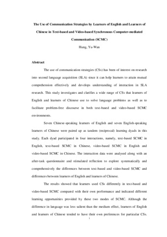 The Use of Communication Strategies by Learners of English and Learners of Chinese in Text-based and Video-based Synchronous Computer-mediated Communication (SCMC)