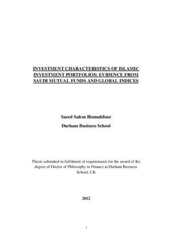 INVESTMENT CHARACTERISTICS OF ISLAMIC INVESTMENT PORTFOLIOS: EVIDENCE FROM SAUDI MUTUAL FUNDS AND GLOBAL INDICES