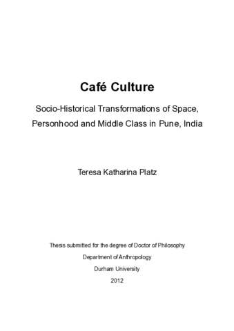 Café Culture: Socio-Historical Transformations of Space, Personhood and Middle Class in Pune, India