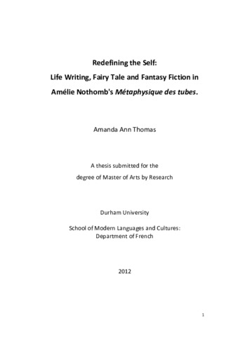 Redefining the Self: Life Writing, Fairy Tale and Fantasy Fiction in Amélie Nothomb's Métaphysique des tubes.
