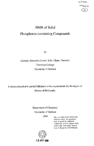 Solid-state NMR techniques have been applied to the structure and dynamic characterisation of a range of phosphorus-containing compounds. Comparisons have been made within several series of compounds as well as studies of individual molecules with interesting NMR properties, whether dynamic, structural or magnetic. Spectral features such as shielding anisotropy, the high sensitivity of phosphorus and its large chemical shift range are extensively utilised in this work. Triple-channel, fluorine-observe and variable-temperature spectrometer facilities at different magnetic field strengths have been explored to give as much complementary information as possible. For both chlorinated and fluorinated diazadiphosphetidines, motional properties have been examined and the indirect spin-spin and dipolar interactions, together with shielding have been studied. Spectra from the NMR-active nuclei in these cyclic dimers have been used to compare effects of differing substituents on NMR properties. The bowl-shaped' molecules, calix[4] resorcinols with phosphorus functionality modifying the upper rim, constitute the other major group of compounds studied. These are of interest in inclusion chemistry. As well as simple one-dimensional NMR characterisation of solid-state calix[4]resorcinol compounds, interesting two-dimensional correlation results have helped with the assignment and conformational conclusions. A qualitative and quantitative study of a co-crystal of triphenylphosphine oxide and phenol was made to establish the nature of the disorder observed, but undefined, in an X-ray structural investigation of the hydrogen-bonded network. Complementary NMR techniques were used to extend the temperature range over which the rate of any motion can be characterised. Bandshape analysis, Tip measurement and selective polarisation inversion experiments have proved to be accurate in different regions of a variable temperature study. Other compounds explored were those which showed interesting solid-state NMR results, for example, the complexities of cross-polarisation dynamics between two abundant spins in inorganic phosphates, and compounds with potential solid-state applications. These include (i) phosphorus-containing compounds with chlorine and fluorinated aromatic substituents and (ii) complexes with transition metals. Comparison with single-crystal and powder X-ray diffraction has also been exploited. In some cases, data have been produced, and in others the applicability of a theoretical approach has led to other conclusions.