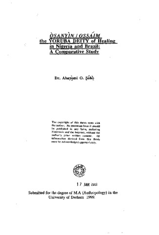 Osanyin / Ossaim the Yoruba deity of healing in Nigeria and Brazil: a comparative study