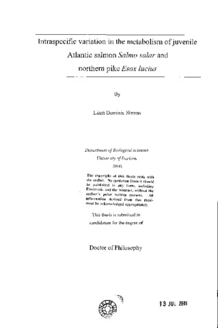 Intraspecific variation in the metabolism of juvenile Atlantic salmon salmo salar and northern pike esox lucius