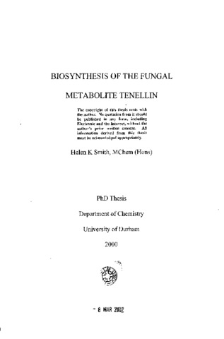 This thesis concerns the biosynthesis of tenellin, a bright yellow secondary metabolite of the fungus Beauveria bassiana. Several putative intermediates have been synthesised and feeding experiments performed in order to provide some insight into the biosynthetic pathway. Tenellin was originally thought to be formed from the condensation of phenylalanine and a polyketide moiety, however recent studies have now shown that tyrosine is the more direct amino acid precursor. The biosynthesis is proposed to occur by rearrangement of tyrosine to 3-amino-2-(4-hydroxy)-phenylpropionic acid, in a similar manner to the rearrangement observed in alkaloid biosynthesis. The synthesis of this β- amino acid is described and the subsequent incorporation study using labelled material discussed. The result argues against the intermediacy of this compound in the biosynthesis of tenellin. Consequently, it is proposed that the biosynthesis of tenellin does not include the rearrangement of tyrosine, but instead proceeds via a five membered teframic acid, which is considered to undergo rearrangement and ring expansion to generate the pyridone ring of tenellin. The putative acyl tetramic acid precursor is synthesised and administered to cultures of Beauveria bassiana. Preliminary (^2)H NMR spectra indicate a possible incorporation and that the tetramic acid has a role in tenellin biosynthesis. Further analysis by HPLC and LCMS is described. The biosynthetic origin of H-6 of tenellin has never been established. Several experiments, including the synthesis of [2-(^2)H]-tyrosine, are described, but the origin of this proton remains unclear.