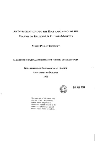 An investigation into the role and impact of the volume of trade in UK futures markets
