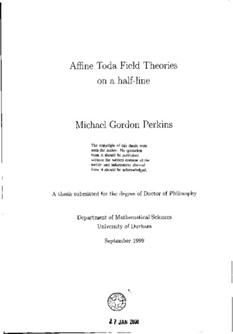 This thesis is primarily concerned with the reflection factors of affine Toda field theories on the half-line x ≤ 0. First, we consider the classical background configurations of low rank a,(^(1)) affine Toda theories with a boundary, constructed by the analytic-continuation of soliton solutions of the corresponding imaginary-coupling theories. We show that only a small subset of such solutions provide acceptable vacuum configurations. These are classified according to the integrable boundary conditions they obey and their classical reflection factors are considered. We next consider the quantum theories, where we aim to provide evidence for or against exact reflection factors proposed in the literature. We do this by explicit calculation of the low-order coupling dependence of the reflection factors via perturbation theory. Two particular examples are considered in detail. The first is the O(β(^2)) calculation for a(_2)(^1) affine Toda field theory with the boundary condition. This will be a good example to study since it is the subject of many conjectured exact reflection factors and also demonstrates the renormalisation of the boundary potential required to retain quantum integrability. The second example will be the O(β(^4)) calculation for sinh-Gordon theory. In light of the added complexity of the higher-order calculation we consider only the Neumann boundary condition. Finally we look at the renormalisation of sinh-Gordon theory and its duality properties.