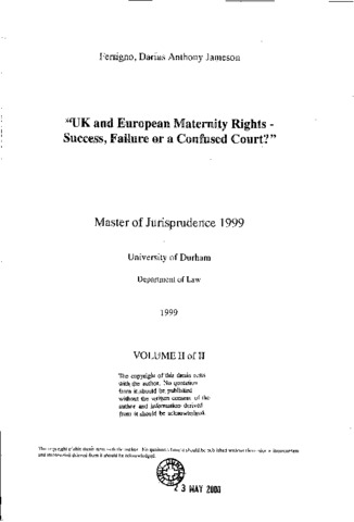 An analysis of the increasing number of women to be found in the workplace, and the rapidly changing nature of women's employment in part-time positions. The role played by the law in enabling women to return to work, particularly on a flexible basis. The development of UK maternity rights, with a brief analysis of current UK maternity rights under the Employment Rights Act 1996. The application of the Sex Discrimination Act, particularly when women wish to combine their employment with child care. Maternity rights available in other EU countries, coupled with flexibility arrangements, and access to parental leave and details of the financial arrangements available. A consideration of EU maternity rights, including a review of the Equal Treatment Directive, and the derogations therefrom, namely where the sex of the worker constitutes a determining factor, for the protection of women particularly as regards pregnancy and maternity, and for positive discrimination. Examination of decisions of the UK courts and the European Court of Justice, in particular considering the cases of Dekker, Hertz, Larsson, Habermann-Beltermann, Johnston v. RUC, Webb, Boyle, Brown v. Rentokil, Gillespie, London Underground V. Edwards, Caledonia Bureau Investment and Property Company v. Caffrey, Halfpenny v.I.G.E. Medical Systems, and Hofmann. Particular consideration of the protection afforded to female employees in respect of the pre- and post birth periods, especially in relation to pregnancy related illness. Analysis of the Pregnant Workers Directive and the Management of Health and Safety at Work (Amendment) Regulations. Consideration of the Parental Leave Directive and new Maternity Rights to be introduced under the Employment Relations Bill. Consideration of possible future developments to include the Part Time Work Directive.