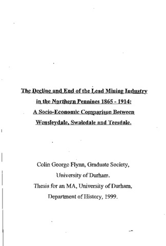 The decline and end of the lead mining industry in the northern Pennines 1865 - 1914: a socio-economic comparison between Wensleydale, Swaledale and Teesdale