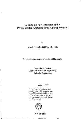 A Tribological assessment of the porous coated anatomic total hip replacement