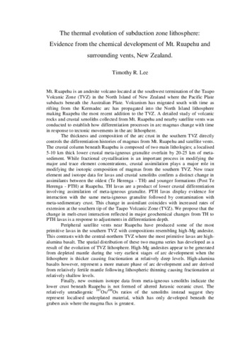 The thermal evolution of subduction zone lithosphere: Evidence from the chemical development of Mt. Ruapehu and surrounding vents, New Zealand.