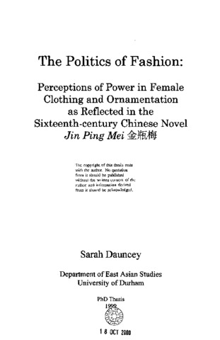 The politics of fashion: perceptions of power in female clothing and ornamentation as reflected in the sixteenth-century Chinese novel Jin Ping Mei