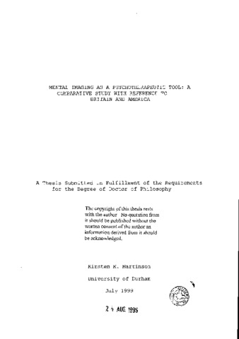 Studies have shown that mental imagery is necessary for proper mental functioning. This dissertation critically analyses the history and perceived significance of mental imagery as a psychotherapeutic tool in counselling in both the United States and Great Britain. The different routes the two countries have taken in phenomenological and behavioural schools of psychology are also examined. Teachers of counselling in the United States and Great Britain are then surveyed in order to compare the perceived significance mental imagery has as a therapeutic tool in each country. There is no other research to date which has worked with this data. The results suggest that due to the emphasis on behaviour therapy in the United States, although mental imagery is utilized in other historically significant psychologicaltherapies, it is only referred to in the United States with reference to behavioural approaches. The most notable approach being "systematic d e sensitization" . Because of this, the perceived significance of mental imagery as a psychotherapeutic tool is high among American counselling professionals only when linked to behavior therapy.Consequently, the perceived significance of mental imagery as a psychotherapeutic tool is lower when considering any other therapies outside of behaviourism. The results further suggest that counselling professionals in Great Britain havea higher perceived significance of mental imagery as a psychotherapeutic tool. A reason forth is may be because most counsellors in Great Britain are trained at institutes which often focus on particular theories rather than all of thehistorically significant ones. Further, Great Britain psychologists never rebuked the concept of mental imagery as psychologists did in America at the advent of behaviourism and "scientific thought" during the World Wars. Moreover, behaviourism, which initially rejected mental imagery, was not as widely appreciated in Great Britain during that time. Therefore, the mental image was still accepted as credible in the British psychological community. The outcome of the survey suggests that in America the growth of mental imagery as a psychotherapeutic tool isinhibited by the lack of references to mental imagery usage with in historically significant therapies. I f the study of these therapies among American counselling students is to continue, a systematic examination on mental imagery usage could heighten the perceived significance among American practitioners. This, in turn, could pave the way for the emergence of more imagery methods in American psychologicalcounselling