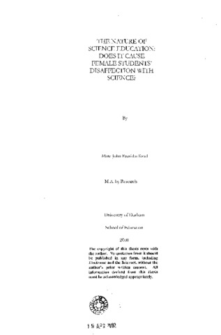 This thesis seeks to answer the question 'Why are students disaffected with science?' Students' disaffection is described in terms of their dislike for science education. Support for the idea that students dislike science is found within the literature reviewed. A possible answer is in the nature of science education. Thus rather than the problem lying with students not understanding science ideas within the education system, it may be that the science is simply impossible to understand. So a major part of the nature of science education is that it is impossible to understand. This possibility is explored with a group of 74 female Bachelor of Education students. The students' perceptions of science are explored, using a research methodology based around interviews about past events. The students’ perceptions of science were that they as students did not like it and that it was not understandable. At this point, it was decided to further interview the students after having experienced an intervention based upon making the science more understandable. These results suggest that the students now have a better understanding of science and that many of them also like it as well. These results support the raising of the question: Does the nature of science education cause female students' disaffection with science?