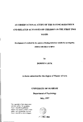 This study was carried out with the intention of providing a method for studying children with feeding disorders, especially those with nonorganic failure to thrive, in then own homes. Thirty-two children, four girls and four boys in each of four different age groups: 6-8, 12-14, 18-20 and 24-26 months, were recruited from volunteers in the Newcastle upon Tyne area. They were each observed individually on three separate occasions, totalling nine hours of observation from 8.00 a m to 5.00 p.m. This allowed most of the children to be observed during their three main meals, and between them The method adapted for the study used data sheets containing tune rulers at one minute intervals, on which codings of direct observations of the child and caretaker could be recorded easily and systematically, without the use of video recorders. These were supplemented by a continuous 'Running Record' of speech, supplementary behaviour descriptions, and descriptions of all food given to and consumed by the child. The boys in this study slept more than the girls, giving them a shorter waking tune. Other behaviours were analysed as a percentage of the child's waking time. There were no significant sex differences, except that caretakers talked more to girls during their waking tune. Older children were more active, they cried less and talked more. They also drank fluids more. They did not spend more time eating, presumably because they were able to eat more quickly than younger children. Caretakers attended significantly more to the care of younger children, they held younger children more, gave them solids more and prompted them to eat more. The direct observational method used in this study allowed a detailed description of the eating behaviours and related activities of normal healthy babies and toddlers, without the reliance of recall by the mothers or caretakers
