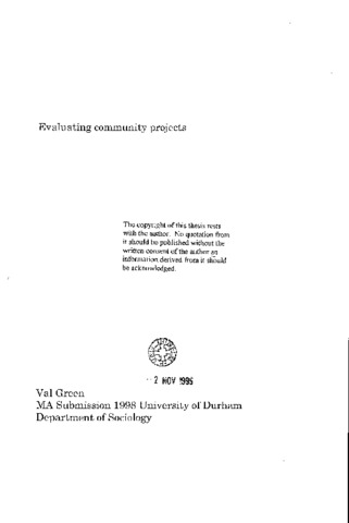 Evaluating community projects seeks to explore the questions- what do users get out of community projects? what do projects achieve? how can we find this out? The study places community projects within a theoretical and historical context and examines participation in relation to involvement of users at different levels in projects. It explores different approaches to evaluation - experimental, American management, participatory and critical and looks at what implications these different approaches have for the meshing or otherwise of different interests. Examples from the case study of evaluation in a community project are threaded through the sections of the chapter on methods of evaluation. These sections are - measurement of intangibles, monitoring and indicators and participatory evaluation. Measurement of intangibles looks at how criteria for evaluation can be set against a background not only of criteria that might have to be negotiated but also concepts which are hard to break down into specifics. The section on monitoring looks at what information we need to gather, in what format from which source and also at project specific indicators. The last section of this chapter examines appropriate methods for participatory evaluation and how far this type of evaluation could be used in a project setting. The conclusion offers an expedient, loose framework for evaluation (as part of the process), which whilst situation specific offers possibilities for adaptation.