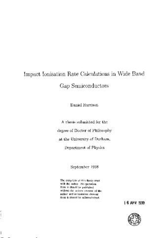 Impact Ionisation rate calculations in wide banc gap semiconductors