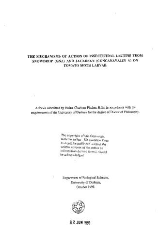 The mechanisms of action of insecticidal lectins from snowdrop (GNA) and jackbean (concanavalin a) ontomato moth larvae