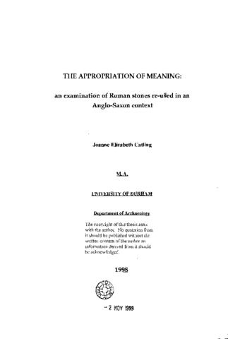 The appropriation of meaning: an examination of roman stones re-used in an Anglo-Saxon context
