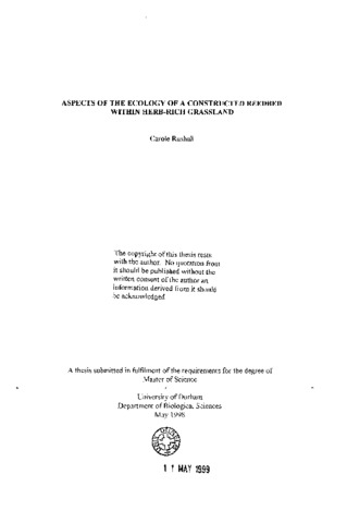 Aspects of the ecology of a constructed reedbed within herb-rich grassland