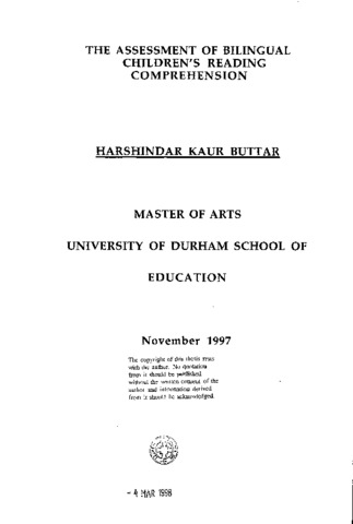 The study aims to show that bilingual children's performance in a linguistic comprehension test may be affected by the language of assessment English, their second language. 36 bilingual, primary school children aged between 7 and 9 years were assessed in the reading comprehension component of the SATs in their first language, Punjabi. Their performance on this assessment was compared with :(i) their comprehension of the same passage in English, and(ii) monolingual children's comprehension of the passage in English. Analysis of the findings suggest that bilingual children have a broader range of language skills and a more fully developed comprehension repertoire, which includes listening skills, than their monolingual peers. The study discusses the various definitions and theories of bilingualism and second language acquisition. It also looks at how the current assessment procedures affect the performance of bilingual learners in UK's primary schools. The rationale of this research is supported by other studies of the similarities between reading and listening comprehension and how the read aloud approach was used to overcome any differences between the two. A macro and micro view of the linguistic backgrounds of the sample of children is discussed. The Preferred Language Questionnaire's methodology, collation of data and interpretation of the children's responses is presented. This is followed by the two reading comprehension tests and the results of the assessments are followed by a detailed discussion on the relationship between bilingual children's linguistic usage and linguistic comprehension skills. The study ends with recommendations for future testing of bilingual learners. The findings suggest that bilingual children have a very wide and sophisticated linguistic repertoire, including comprehension and listening skills, that is being ignored or overlooked in the current modes of official school assessments. The results of the reading comprehension tests have implications for bilingual and monolingual teachers, parents and children in primary schools. The study will outline alternate classroom methods and assessments appropriate for testing bilingual children's linguistic competence. Finally, the study concludes that the current assessment procedures (SATs) are not only inappropriate for bilingual children but they may impact on their broader educational outcomes.