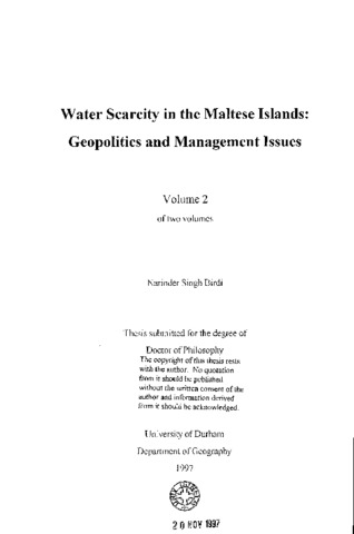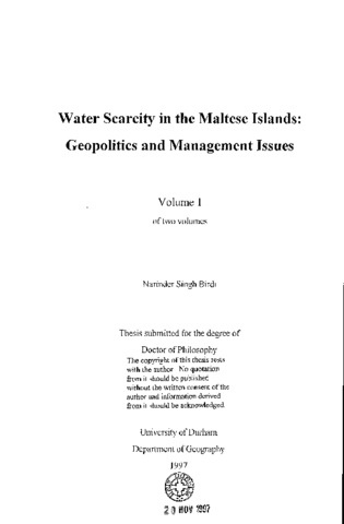 Water scarcity in the Maltese islands: geopolitics and management issues