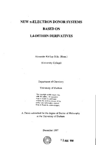 A review of organic, π-electron donor molecules is given. The focus is on non- tetrathiafulvalene based systems. Polycyclic arenes, thioalkyl substituted arenes, chalcogenated fulvalenes, peri-dichalcogen bridged polycyclic arenes and heteroarenes are covered. Various π-electron donor molecules based on acenaphtho[ 1,2-b][ 1,4]-dithin have been synthesised via various methodologies. The redox properties of these molecules, as studied by cyclic voltammetry, provide evidence that these species are efficient π-electron donors. A selection of these compounds have also been studied by Electron Spin Resonance. Two ring expansion methodologies have been utilised in the synthesis of acenaphtho[l,2-b][l,4]-dithin based systems from 1,2-dithiols. Complexation of 7,12- dithia-benzo[k]fluoranthene, thus synthesised, with 2,5-dibromo-7,7,8,8-tetracyano-p- quinodimethane and iodine (I(_4) counter ion) yielded highly crystalline but poorly conducting salts.1,2-Dibromoacenaphthylene and benzo-l,2-dithiolate species have been reacted to form new 7,12-dithia-benzo[k]fluoranthene derivatives, two of which have been studied by X-ray diffraction. The versatile oligo(l,3-dithiole-2,4,5-trithione) compound has been used to generate various compounds containing the 1,4-dithiin ring including 8,9- di(methylsulfanyl)acenaphthyleno[l,2-b][l,4]dithine, which forms complexes with 7, 7,8,8-tetracyano-p-quinodimethane, 2,5-dibromo-7,7,8,8-tetracyano-p-quinodimethane and iodine (I(_7) counter ion) all three of which have been studied by X-ray diffraction. A novel 1,2,4-trithiolane has also been synthesised and characterised by X-ray diffraction.