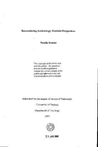 The predominant model in feminist theologians' critique of theology and praxis of the church has been that of women-church based on the concept of base ecclesial communities developed by liberation theology. The first part of this thesis challenges the women-church model by arguing that even though women-church asserts that women are church, its shortcomings lie in its lack of use of the ecclesiological tradition as well as its unawareness of the dimension of gender for ecclesiology. A feminist reader-response critique of four traditional ecclesiologies shows that women have so far not participated in the process of writing ecclesiology, but that women need to reclaim the ecclesiological tradition because they participate in the church. An analysis of the use of liberation theology for feminist ecclesiology demonstrates that the ecclesiology of liberation theology, even though it points out that the reality of human beings being church shapes the theology of the church, remains unaware of the dimension of sexual difference. Chapter five discusses 'gendered ecclesiology’ as pointing to the importance of sexuality for the rewriting of ecclesiology. In order to write an ecclesiology conscious of the fact that the church consists of sexuate human beings feminists need to reclaim the communion of saints, Mariology and most importantly the relationship between Christ and the church. Chapter six concludes that feminist theologians are not to develop one particular ecclesiological model as the most apt one, but to redefine the ecclesiological debate from the perspective of women being church. In order to do that it is necessary to reclaim the power centres of patriarchal ecclesiological discourse: sacramental celebration, the word of God and the presence of Christ. The church as the community that embodies the body of Christ becomes the space where the stories of women’s lives tell and perform the story of Christ.