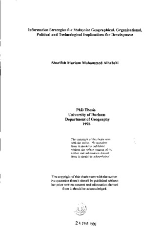 information strategies for Malaysia: geographical, organisational, political and technological implications for development