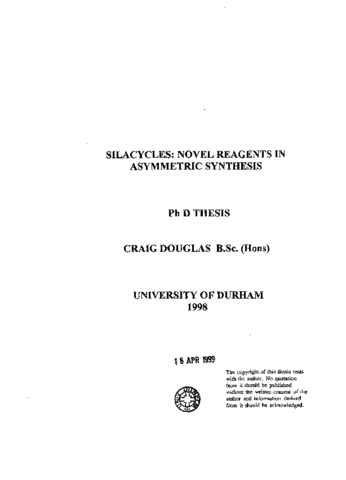 Silacycles: novel reagents in asymmetric synthesis