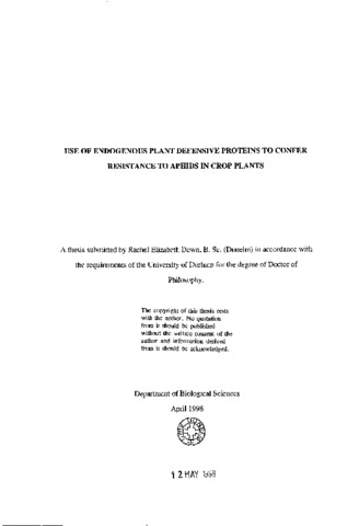 A liquid artificial diet system, which was suitable for bioassay of added compounds, was developed for the glasshouse potato aphid, Aulacorthum solani. The diet supported normal growth and reproduction of this insect. Once established, the artificial diet bioassay system was used to test potential insecticidal activities of a variety of proteins found naturally occurring in plants. Effects on survival, development and fecundity were measured. The lectin found in snowdrop, Galanthus nivalis agglutinin (GNA) was found to significantly reduce the fecundity of A. solani, in terms of parthenogenetic nymph production, when administered in artificial diets at the 0.1% w/v level. No significant reductions in survival were found, although GNA administered in vitro did appear to slow the development of A. solani. Transgenic potato plants expressing GNA were used in a growth room trial to show that the reduction in fecundity with the in vitro trials could be reproduced in planta. Aphids feeding on the GNA-expressing potatoes had a significantly lower cumulative nymph production than those feeding on non- transformed plants. The transgenic plants had no effect on the survival of A. solani. The GNA-expressing plants were tested in a larger scale glasshouse trial and resulted in a significantly slower buildup of aphids when compared to control potatoes, thus confirming the results of the artificial diet bioassays and in planta growth room trials. Immunohistochemical studies were performed to detect the presence of GNA in the gut lumen of A. solani fed on artificial diet containing 0.1% w/v GNA; the lectin was observed to be selectively concentrated in the region of the epithelial membrane in the stomach, suggesting that binding to surface carbohydrates or glycoproteins was taking place. Binding to the gut surface has been suggested to mediate lectin toxicity in higher animals, and other insects. A synergistic effect was observed with transgenic potatoes expressing a double construct encoding GNA and bean chitinase (BCH); A. solani cumulative nymph production on these plants was significantly reduced compared to aphids feeding on control and GNA-only expressing plants. However, interestingly, BCH-only expressing plants did not significantly affect the fecundity of A. solani, although a slight reduction in nymph production was observed. On the basis of reports in the literature that suggested that chitin-binding lectins were toxic to insects, an attempt to isolate the gene encoding the chitin-binding stinging nettle lectin was made. RNA was extracted from nettle rhizomes and used to prepare a cDNA library. Successful library construction was verified. PGR methods and a primary screen of the library were used in an attempt to locate the gene.