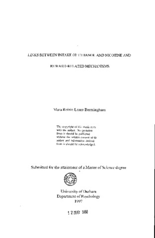 Links between intake of ethanol and nicotine and reward-related mechanisms